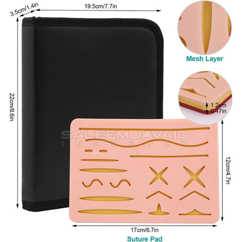Kit de práctica de sutura para principiantes con almohadilla para la piel y herramientas esenciales para la Educación Médica Kit completo de sutura quirúrgica